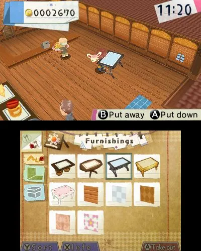 You choose between a male or female avatar along with customization options. The atmosphere may mimic Harvest Moon as a warm world where you interact with people, but Hometown Story is focusing on two major elements: maintaining and expanding a shop and getting to know the town members. The strategy of keeping up a shop and setting prices is one thing, but Wada also wants players to focus on the people. Therefore, you must befriend the locals and take into consideration what they want in the shop for success. Putting the thought and time in will give you insight into 30 unique stories as the town grows to over 100 members. Befriending villagers comes with perks like them giving you items, but pleasing them isn't easy; you might have to trek out to the mountains and find a vendor to help fulfill item requests. Additionally, romancing a villager is an option, and Wada was happy he got to focus on just crafting a few romance options so he could put a lot of thought into them and make them all standout.