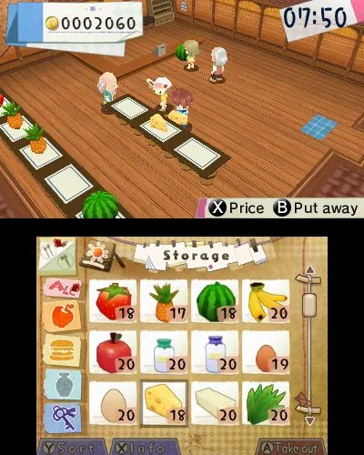 As a business newbie, you won't have shopkeeping 101 to teach you the rules; instead, you're thrown into the action and must learn the majority from experience, from tracking down rare items to learning the customers' tastes to maximize profit. The biggest challenge isn't the financial struggle, but balancing your time between running the shop and getting to know the townspeople. Everything revolves around the community and needing them to get by, so you're dependent on the villagers for crops and fish to sell. While you're earning money to expand your shop, you're also investing it back into the people by saving up for special items that bolster their relationships. Lending a hand for someone else's benefit is clearly the point. The main goal isn't merely to succeed, but decide if you want to put your efforts towards the happiness of others by choosing a character and fulfilling their biggest wish. Despite the intent, this tone is more campy and preachy than uplifting.