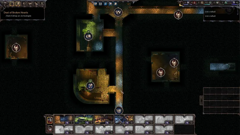 The second part of an Impire scenario, which takes place concurrently with the first, is even less entertaining. Your squads of minions (each consisting of one healer, one tank, and two of the best other units you can afford) crawl through preset enemy dungeon layouts, beating up the foes standing between them and your objectives. Tactics are impossible to execute, as giving any orders prevents your squad AI from using its powers appropriately. Tanks don't protect their fellows and healers don't heal if you give a direct attack order, for example. The idea of building a better army and then watching the AI battle it out works fine in other titles where it's a sideline to the real meat of managing a simulation, like in Majesty. In Impire, the lack of anything else to do makes the non-interactive combat just another frustration.