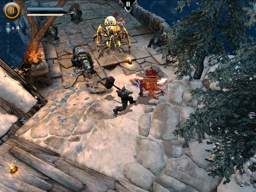 As with the previous Infinity Blade games, the controls are simple but elegant. You swipe your finger to perform an attack, tap on your character to block, tap two fingers to dodge, and move your finger around the world to navigate. You can also perform special attacks with various weapons. Circling your character when he's surrounded by foes performs a whirlwind attack, and double-tapping an enemy allows your hero to perform a powerful smash attack. To execute a ranged attack, you can tap the weapon and draw a line to its intended target.