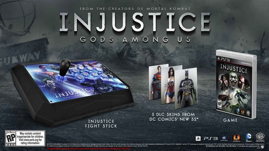 The Battle Edition, which you can see below, will be $149.99 and will include the three skins for Batman, Superman, and Wonder Woman, as well as a arcade fighting stick with art from the game. This version will only be available at GameStop and EB Games.