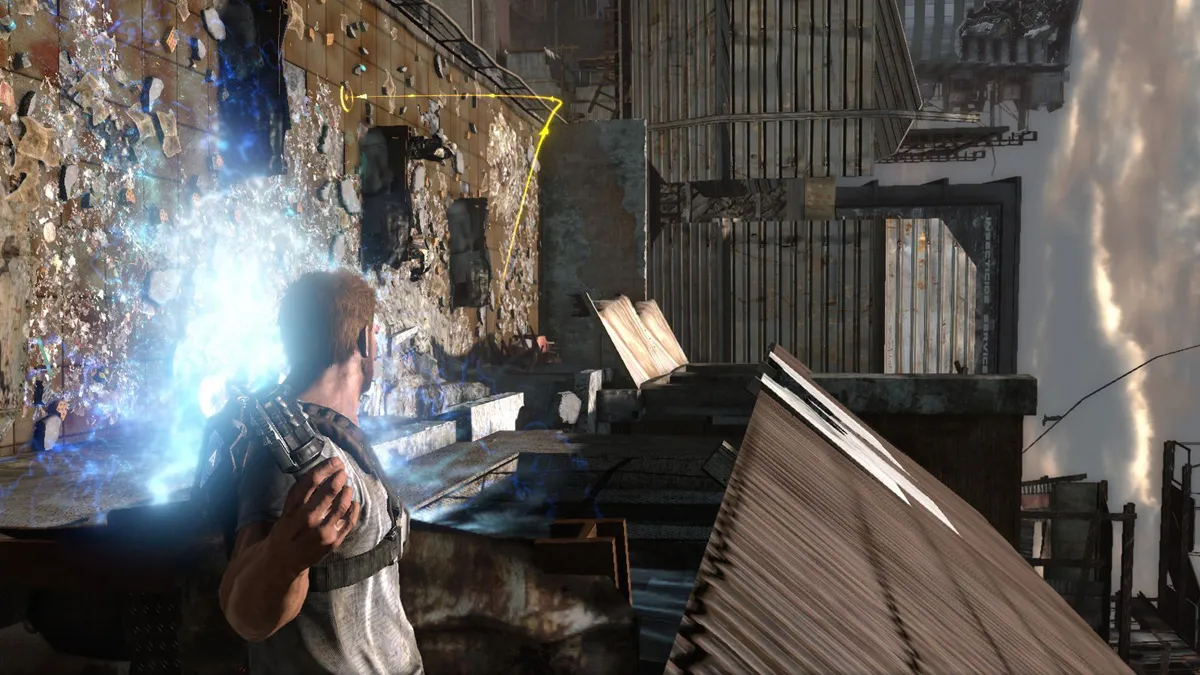 Near the end of the demo, Inversion threw yet another twist on the third-person shooter my way. At certain points in each area, Russel will come upon glowing blue spots on a floor. Stepping through these conduits causes gravity to shift, allowing him to walk on walls or ceilings. In several spots I encountered enemies who were already on a wall, firing at me from odd angles, often able to hit me even as I was ducked behind cover. Grenades switch gravity when tossed through conduits as well, allowing me to surprise the bad guys with explosions. I had to quickly get used to checking for enemy fire from every single direction, a process that led to my death more than once.