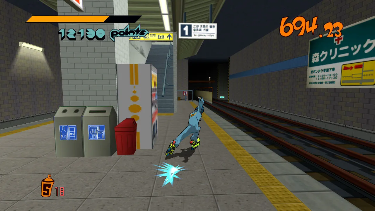 The visuals and the soundtrack remain the highlights of the experience. It’s visually appealing, and the crisp lines look great in high definition. I’ve always liked cel-shading – the technique seems to age well. By placing an emphasis on defined borders on the figures and eschewing complex textures (which would now look ugly), cel-shading evokes that timeless quality that older, sprite-based games have. As for the soundtrack, the forward-looking mix of Japanese pop, dance music, and American hip-hop is as energetic and fun today as it was over a decade ago.