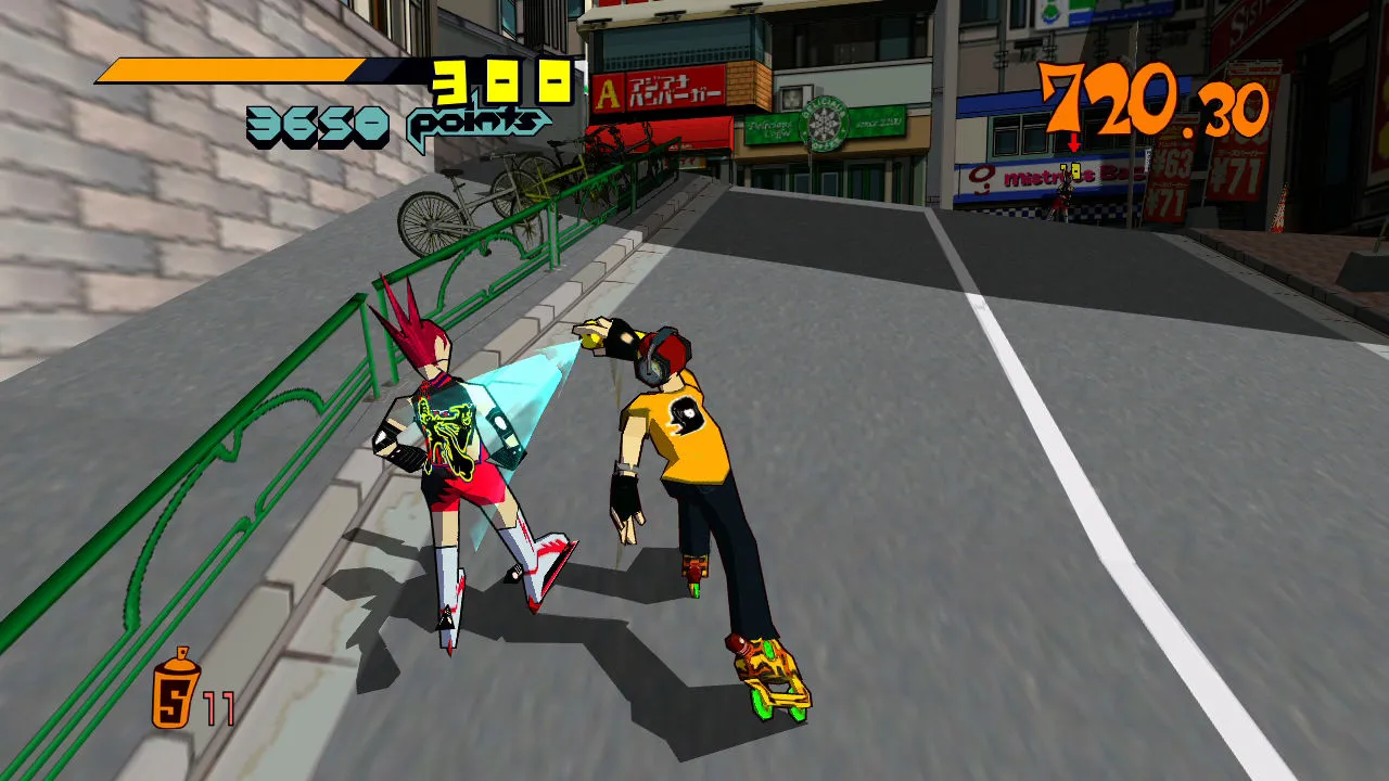 That’s the case with Jet Set Radio. The game is fondly remembered for its cel-shaded graphics and distinctive art style, which blended influences from graffiti art, raver style, and Japanese animation. The game features a group of in-line skaters who must grind the streets of a fictionalized Tokyo while tagging graffiti and avoiding the police and rival gangs. At the time, their urban style was cutting edge; now, they look a bit like anime versions of Seth Green’s character from Can’t Hardly Wait (a film reference that’s about as dated as this game).