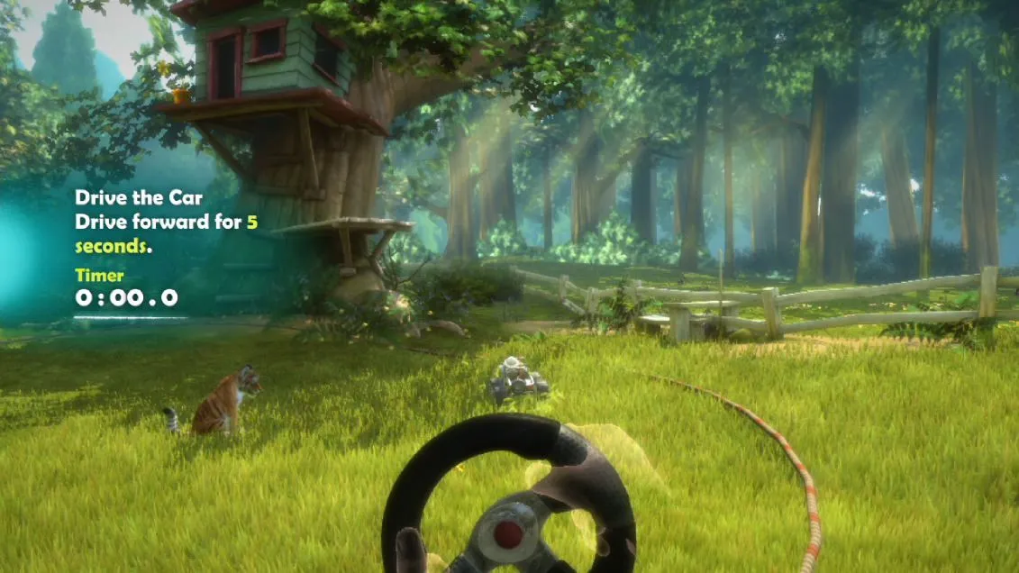 When moving to new areas, Kinectimals presents a minigame challenge for you to complete for a high score. Race an RC car around an obstacle-filled track, kick soccer balls to knock down different objects, shoot targets with a water gun – the list goes on. Though some of the challenges are repetitive, later challenges take familiar mechanics and ramp up the difficulty and complexity to keep things fresh.