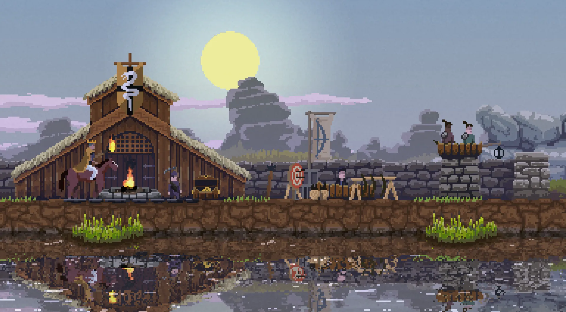 As the king or queen, players must venture on horseback through their kingdom, collecting coins and allies to help build fortresses and defend themselves from hordes of evil nocturnal monsters. Players can build simple things like siege walls, or more elaborate structures like archer towers. Though there is an end-game state, death and destruction are practically guaranteed as players learn the mechanics of their kingdom and put their hard-earned lessons to use in the next campaign.