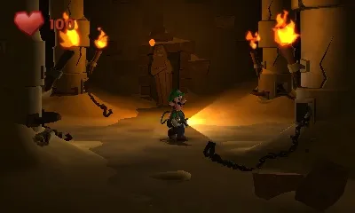 The main gameplay of Luigi’s Mansion 2 takes place on the top screen in full 3D. On the bottom is a map as well as some other HUD information. Pressing the right shoulder button starts up Luigi’s vacuum in its traditional suck mode while pressing the left shoulder button makes the vacuum blow items away from it. Tapping ‘A’ causes Luigi's flashlight to emit a strobe flash that stuns enemies.