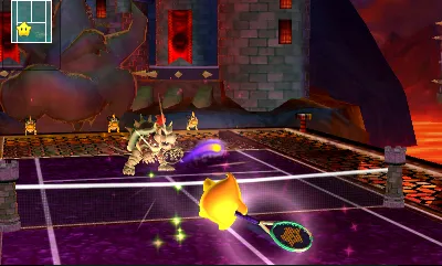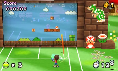 The expected minigames return, though there are not as many as in Power Tennis. Galaxy Rally (where you must rally with your opponent to hit a certain number of returns), Ink Showdown (where the giant squid ball machines will obscure your view with ink blobs), and Ring Shot are fairly standard stuff. However, the Super Mario Tennis mode is ingenious. The original Super Mario Bros. is displayed on the backboard, and it scrolls as you hit coins, blocks, and enemies with the ball. You can even hit warp pipes to travel up and down to hidden areas and aim at the flagpole to end the level. It’s just another example of Nintendo’s endlessly inventive method of recycling its past.