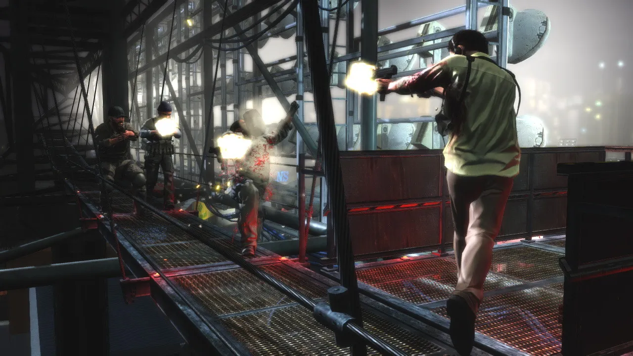 The second level we play is down by the docks, where the Sombra is keeping Fabiana. By shooting out a wedge behind the tire of parked truck with a silenced pistol, we begin the level with a bit more stealth than we’re accustomed to from Max. However, after blowing our cover, we’re thrown back into the fray. While the level design is straightforward (i.e., run into a new area, shoot everyone), there’s a definitely a learning curve in terms of how to approach each scenario. In one garage area, we also got a look at one of the game’s mini-Bullet Time events. After diving off a walkway, the game automatically went into Bullet Time and I was able to pick off enemies on the ground floor with one-hit kills.