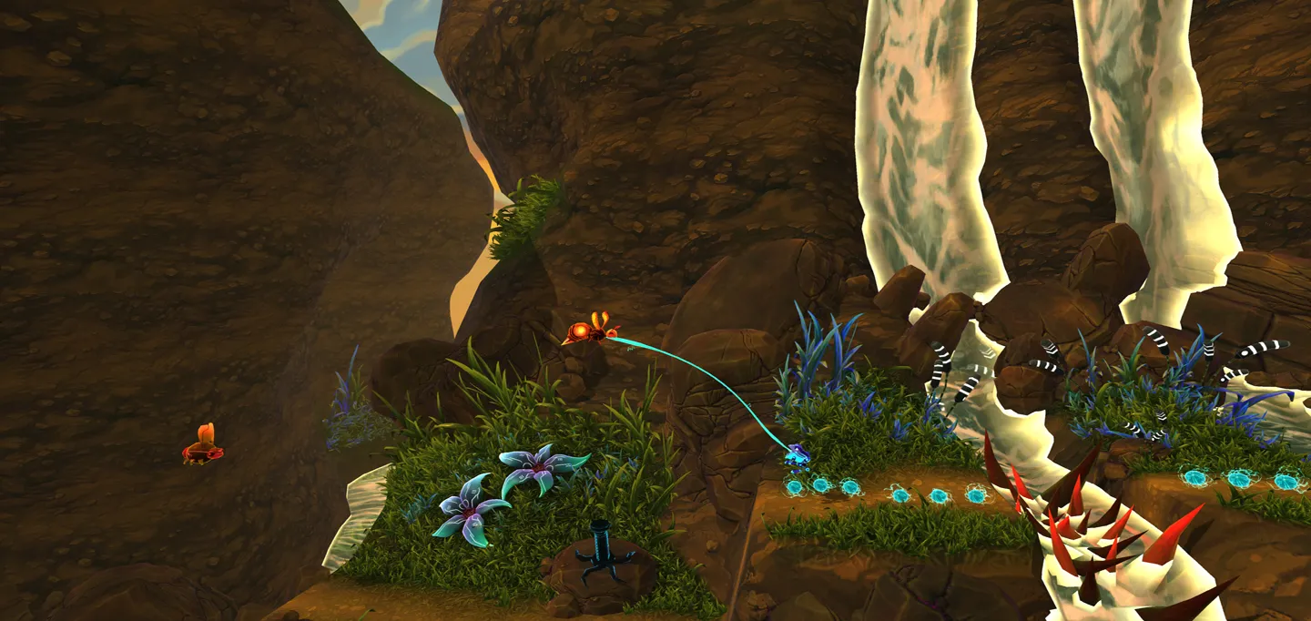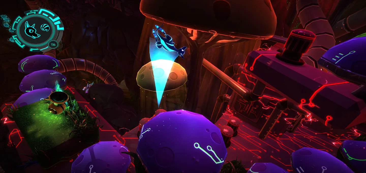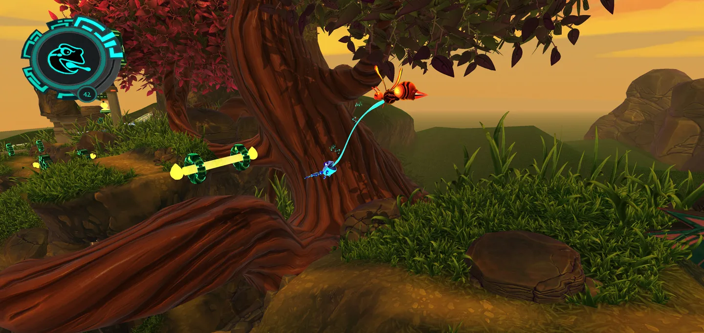 Mekazoo features five mekanimals, all with their own unique skill and ability to perform combos with other mekanimals. At some point in the game, these little guys run into an army of insectoids and must swing, boost, bounce, and fly through Mekazoo's level in order to combat this threat.
