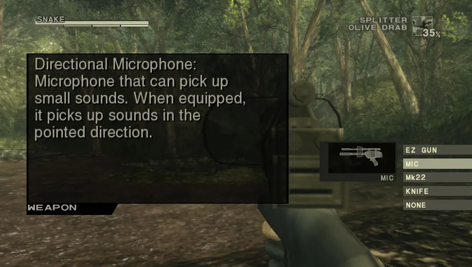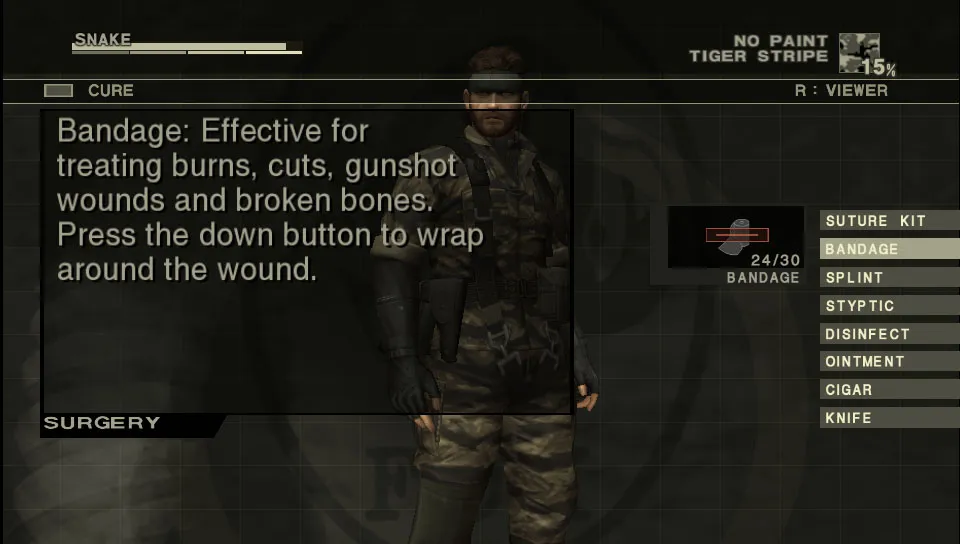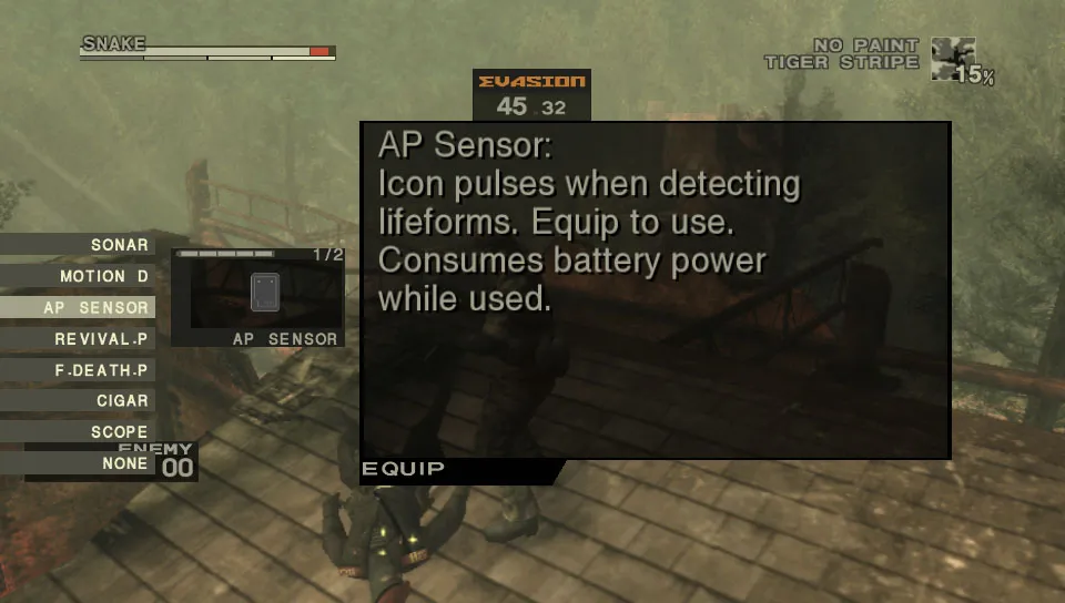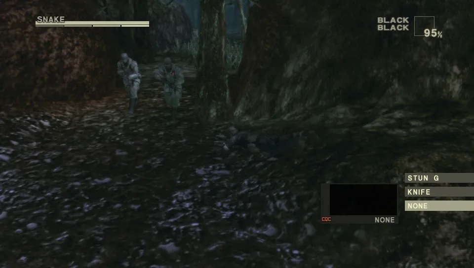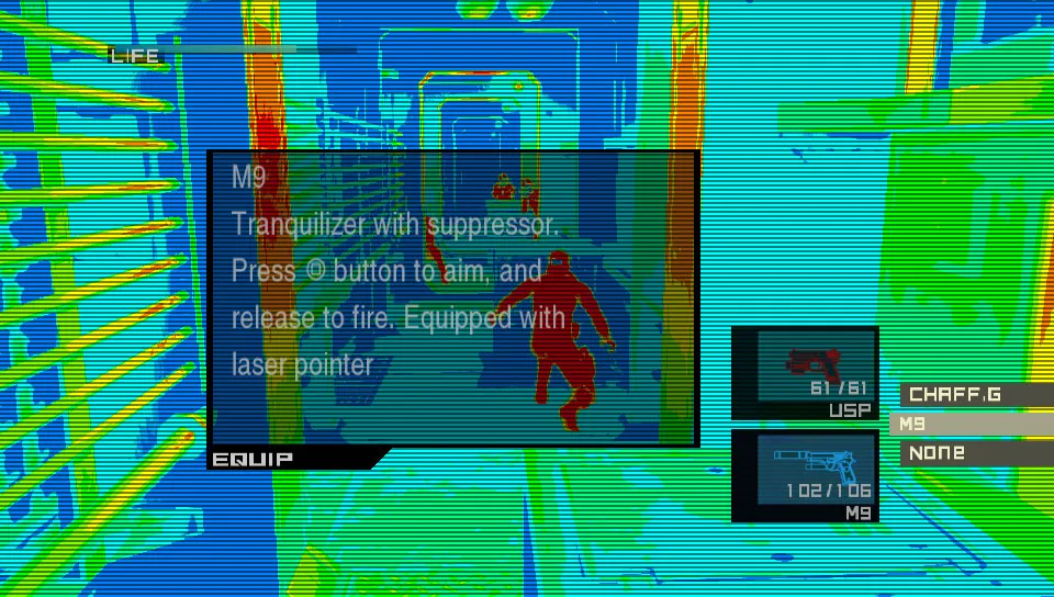 The back touchpad also has spotty implementation. It’s used for knife stabbing in MGS 3, and for slight first-person camera adjustment in MGS 2. However, my grip on the Vita resulted in several errant swipes across the pad, which was annoying but never had disastrous results. Other control switches, like pressing down on the d-pad to raise and lower your weapon, are necessitated by the Vita’s lack of pressure-sensitive buttons. These changes aren’t nearly as distracting as the touchscreen stuff, but they certainly aren’t improvements, either.