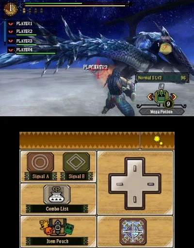 The Monster Hunter series is all about joining up with friends to take down huge beasts, recovering resources from their bodies, using it to create awesome new gear, and repeating the process. My brief hands-on time with the game was par for the course. I controlled the action with the Wii U GamePad, watching the TV as I wandered around a hub town. A mixture of UI information is spread across the TV and GamePad screens, and you can move each meter and menu between them for a custom view. Want a clean look at the action on the TV? Move all the UI details to the GamePad screen. The same applies for the 3DS’ upper and lower screens.