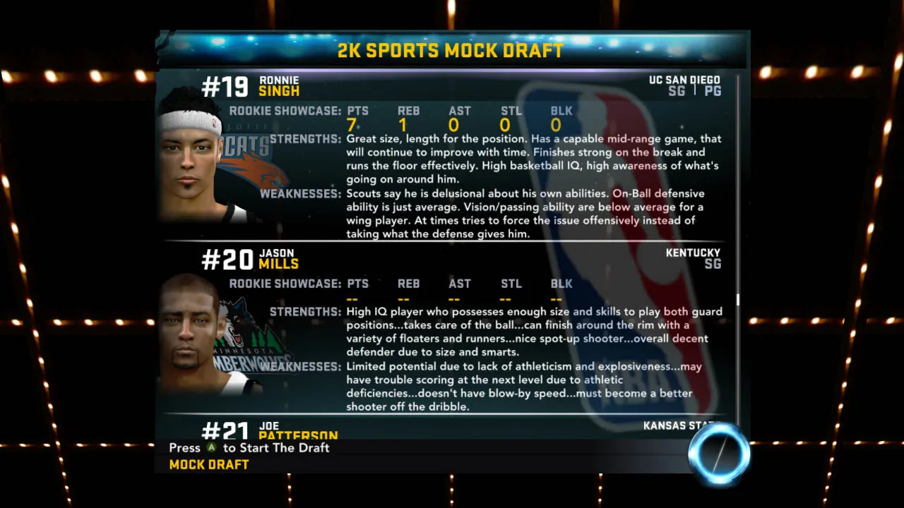 Much like EA Sport's Be A Pro mode in the stellar NHL series, this year you skip the boring summer league procession of meaningless games in favor of a rookie showcase. Once you show the GMs what you can do on the court, you attend a series of pre-draft interviews where the GMs ask you questions to get a feel for your personality and contemplate how you would fit into their team dynamic. The example Boenisch used was the Chicago Bulls talking to a point guard recruit. Knowing they have all-world phenom Derrick Rose running the point, they aren't going to expect you to come in and be the starting point guard. Rather, they'll ask you if you would be comfortable giving the team some energy coming off the bench. How you answer these questions will help determine your fate; if you're vehemently opposed to taking a supporting role and say so, you may get a negative rep of being difficult to work with and watch your draft stock slip.