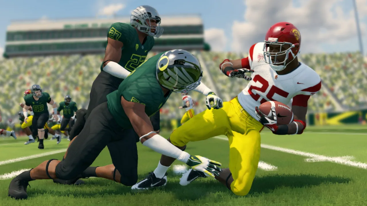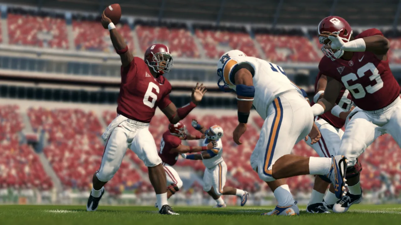 NCAA uses a revamped version of the Infinity Engine from Madden NFL 13, and while some of the post-play pratfalls and more outrageous moments have been cleaned up, you still see inconsistent collision results between players and a lack of smoothness. The new interplay between the ball carrier and his blockers is a step up, but there are times when you are guided around them and others when there's nothing you can do to get around them.