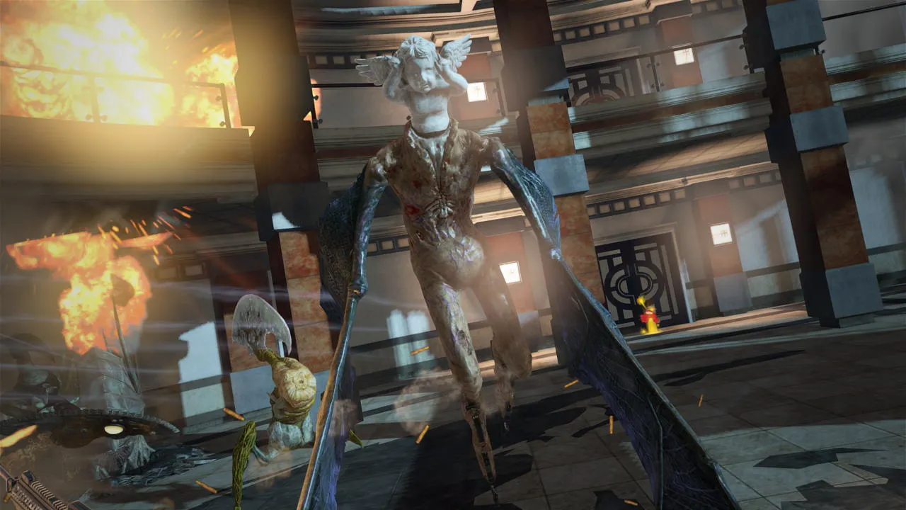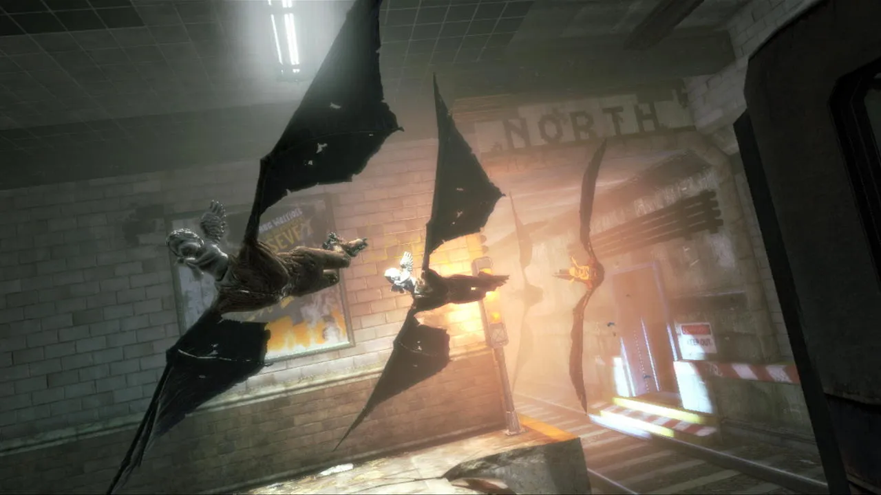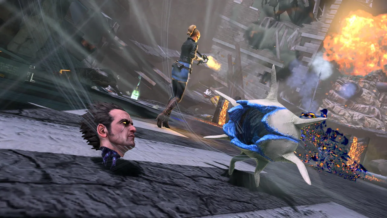For those of you who haven't seen this game yet, NeverDead is the brainchild of Metal Gear Solid vet Shinta Nojiri and Rebellion Studios (Rogue Warrior, Aliens vs. Predator). To recap, this crazy plot stars an immortal with a dated fashion sensibility who works for the National Counter Demon Agency (my favorite government bureaucracy by far). His speciality? Using his dismembered limbs offensively and defensively to turn the tide of combat.