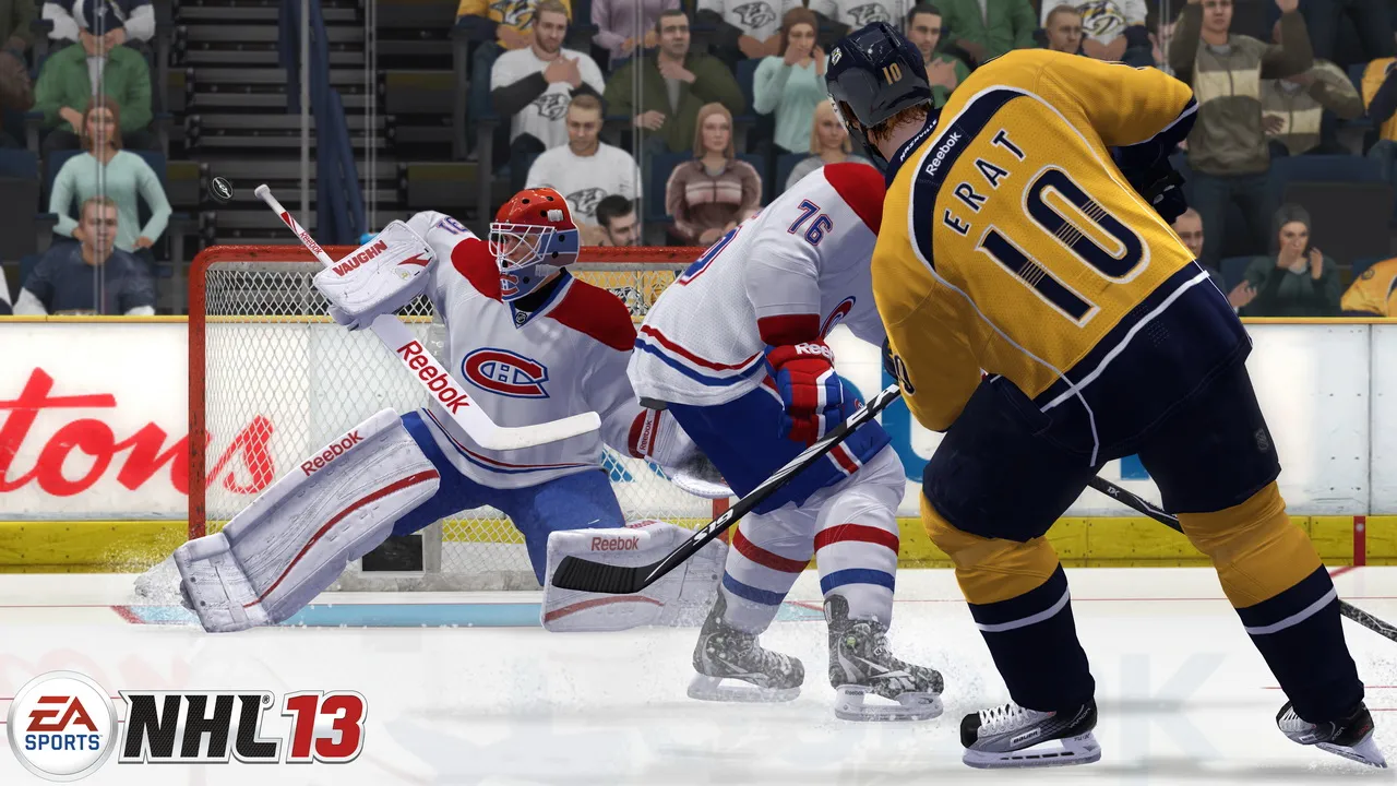 The NHL development team also opened up about other changes its made since we saw the game a couple months ago. Based on early fan feedback on NHL 13’s direction, the development team decided to change the player ratings to create more of a gap between the star players and the average skaters in the league. Franchise players like Sidney Crosby are still rated in the 90s, but the average ratings of third-line defenders are in the mid-70s instead of the low-80s this year.