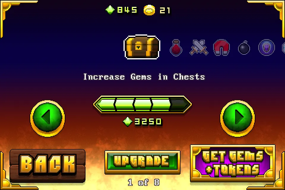 The structure of Nimble Quest is ingenious from a milk-the-gamer standpoint, but it falls flat on other levels. Those upgrades that you can buy? They only make temporary power-ups last longer; they don't add any cool abilities or change your strategy in the slightest. The bonuses you get for leveling up (whether naturally or by paying) are passive buffs without any drastic impact. The characters you unlock for progressing fall into a small assortment of basic classes. Even though Nimble Quest functions as intended as you weave through enemies and dodge hazards, you have no incentive to do so.