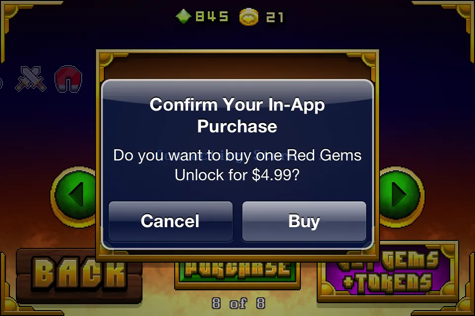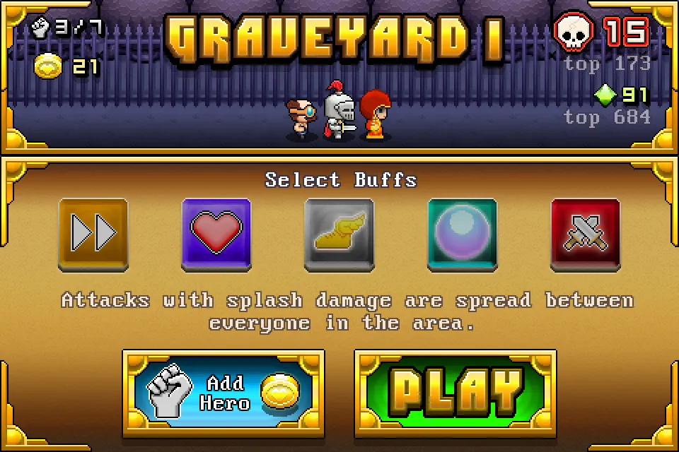 The design is built around making you pay. Making any progress past the initial hour or two is practically impossible without forking over some cash. Reaching level 1 with a hero is easy, level 2 takes longer, and level 3 requires a prohibitive amount of experience that no sane gamer would accrue. That's just for one hero; you can unlock 15 in all, and reaching max level with any of them practically requires you to buy gems. You're going to want to buy more continue tokens once you run out, too, because starting over and slogging through the early levels again is tedious and time-consuming. When a major part of a game's design is making gamers want to skip as much of it as possible, something has gone wrong.