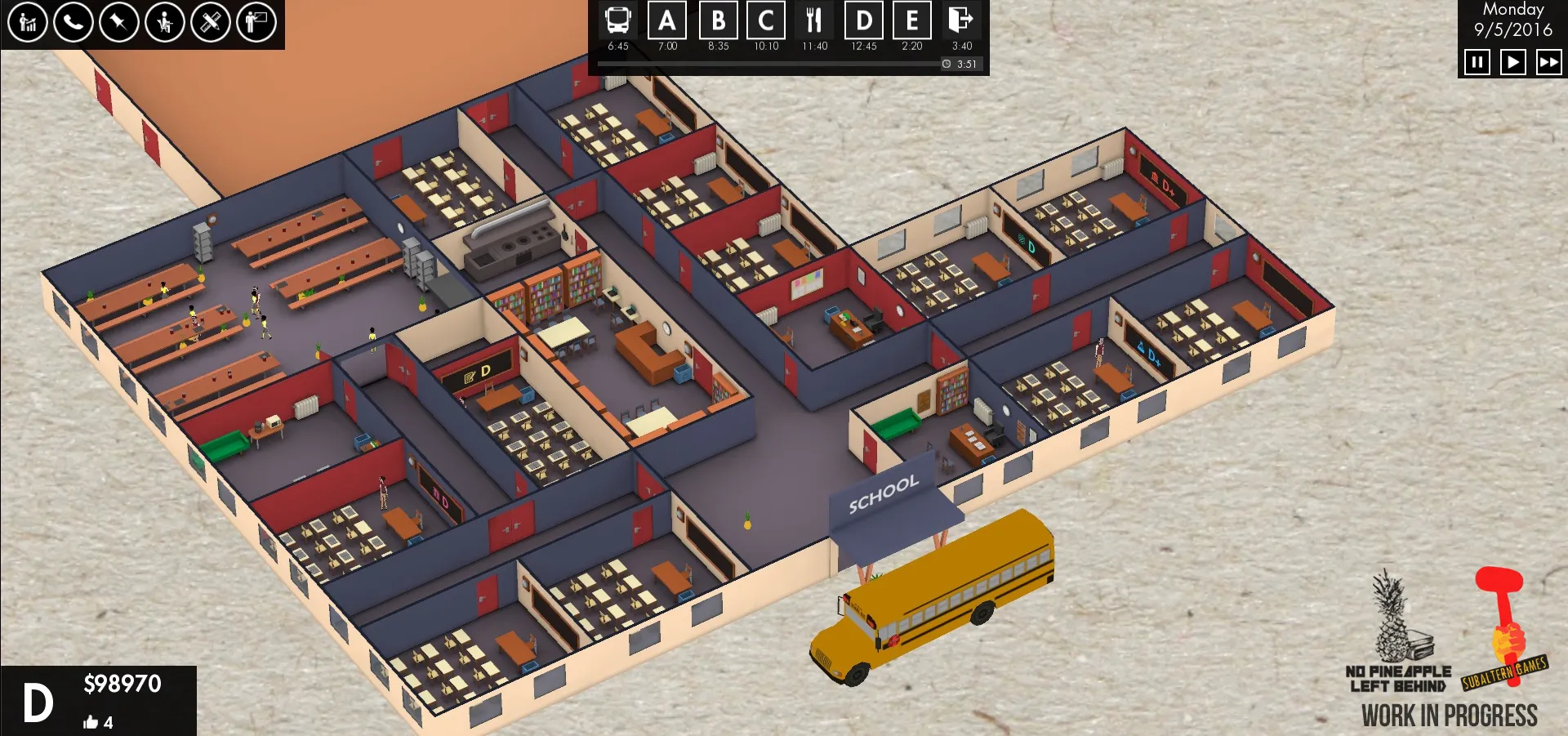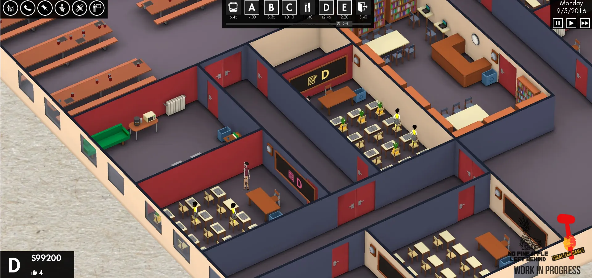 No Pineapple Left Behind has a strange premise: As principal of a school, you manage the curriculum of a student body that can be turned into pineapples at your will.
