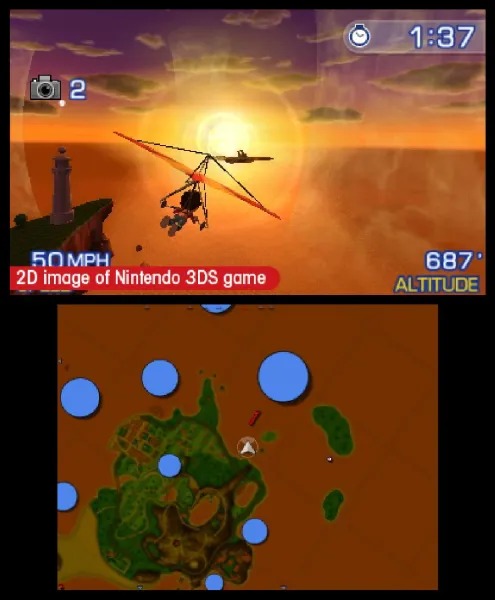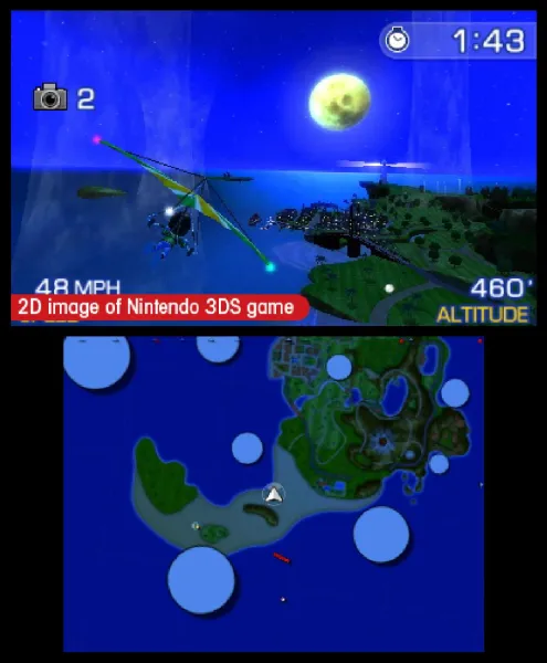 As a means of showing off the new portable hardware, Pilotwings Resort works well enough. As a game, though, it only has brief gusts of brilliance amidst a wide-open sky of rings to fly through.
