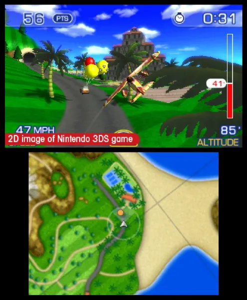 If you’ve played either of the previous Pilotwings games, you’ve probably got a pretty good idea of what to expect from Pilotwings Resort. It continues the series’ simple formula of flying around in various aircrafts while showing off the 3DS’ improved graphical capabilities as well as the 3D functionality itself. Sadly, though, Pilotwings Resort is held back from any lasting impact because of a handful of shortsighted design choices.