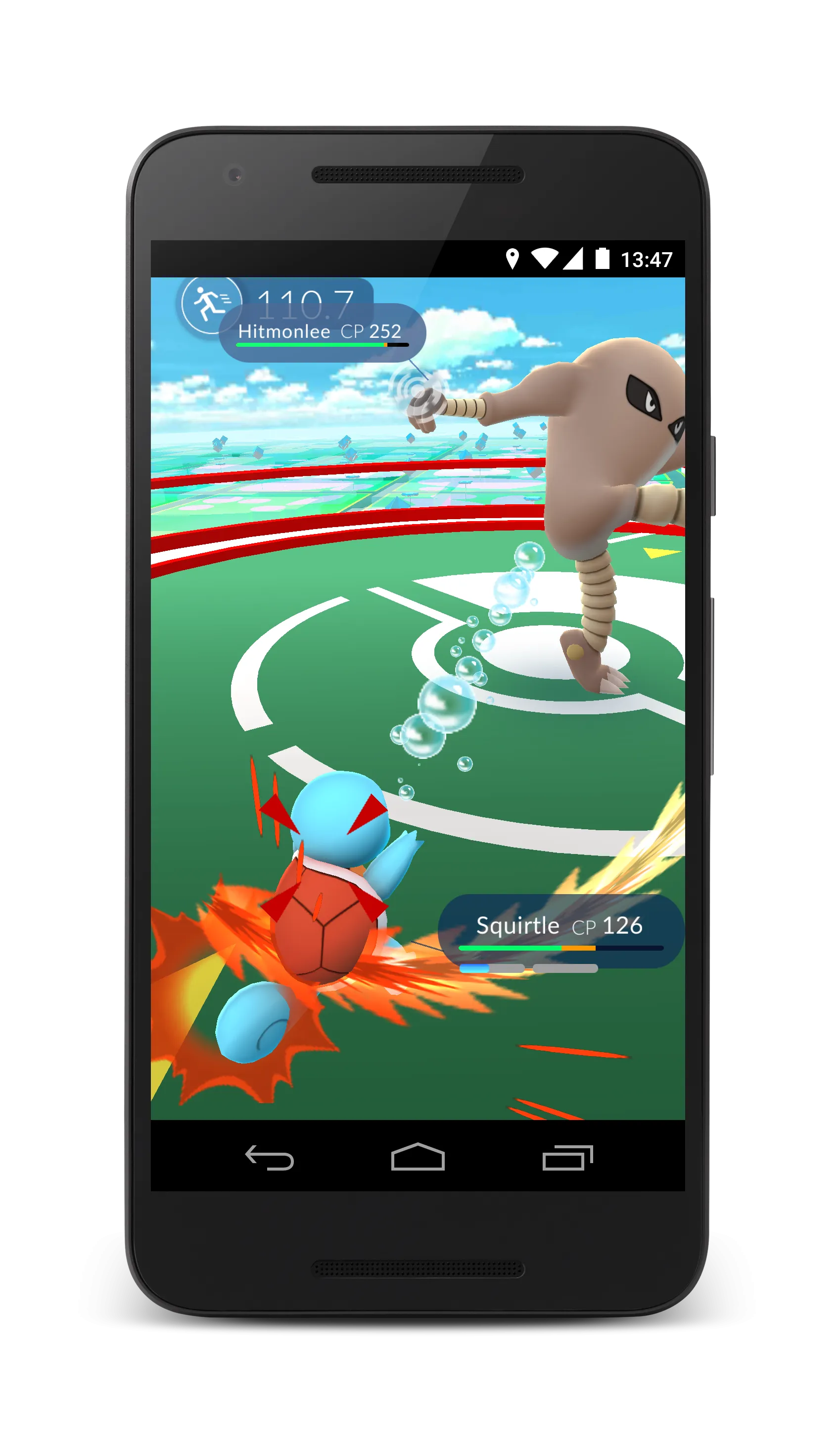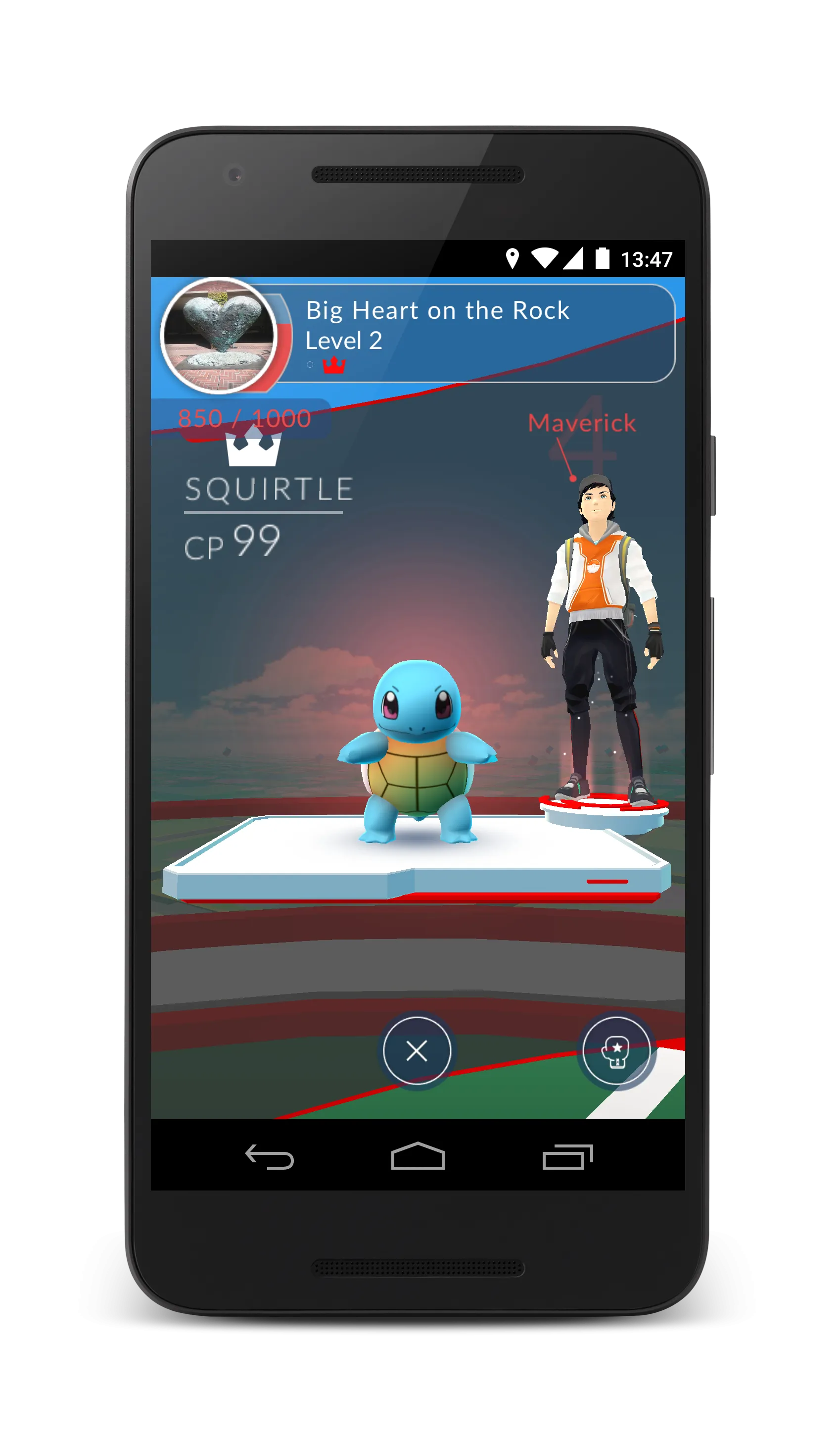 PokéStops (where players can find Pokéballs and other items) and Gyms will be located at high profile locations around the world. There is a swiping game that is connected to battling, and players can take over a gym and assign one of their Pokémon to help defend control of it.