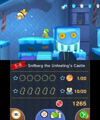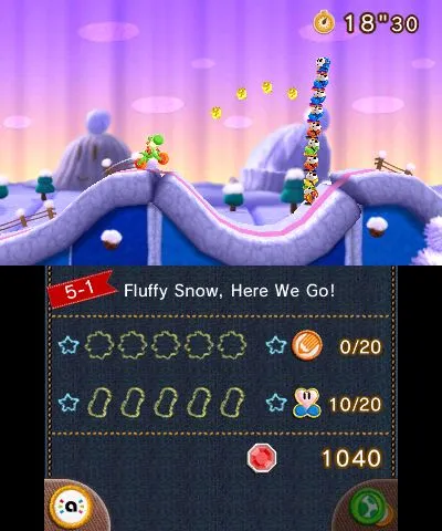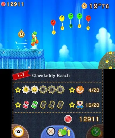 Co-op mode, a destination for many in the Wii U version, is gone for 3DS, but I didn’t miss it. On Wii U, Woolly World functioned better as a single-player game. The Yoshis are large character models, and placing more than one on the screen could sometimes get claustrophobic.