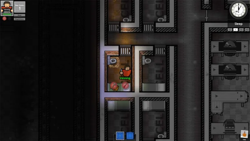 Ultimately, the goal is efficiency. You need to keep prisoners docile enough to obey, but content enough to avoid riots – all while making a profit. This all happens through intelligently constructing your prison, from the walls to the wiring. This isn’t one of those simulations where you just follow your heart and whims because there’s “no wrong way to play.” If you build your canteen too far from your cell block, your prisoners won’t have enough time to eat. If you don’t automate your jail doors, mobs of prisoners collect on either side as they wait for a guard with keys. After you deal with the basics – like cells, food, and hygiene – the layers of complexity are gradually uncovered and give you new goals and challenges. I had a blast optimizing my layout, experimenting with new solutions, and getting closer to that feeling of having a self-sustaining, well-oiled machine.