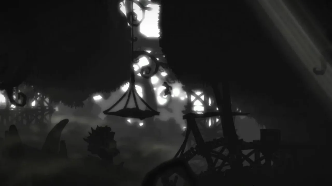 This game has the player chasing a character across a dark, side-scrolling landscape.