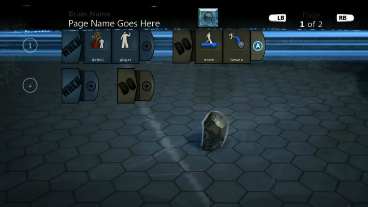 What makes the level creation easy is that objects like characters and props are pre-loaded with "brains." The brain basically consists of actions that these objects perform. The brains can be set to perform desired new actions by the player.