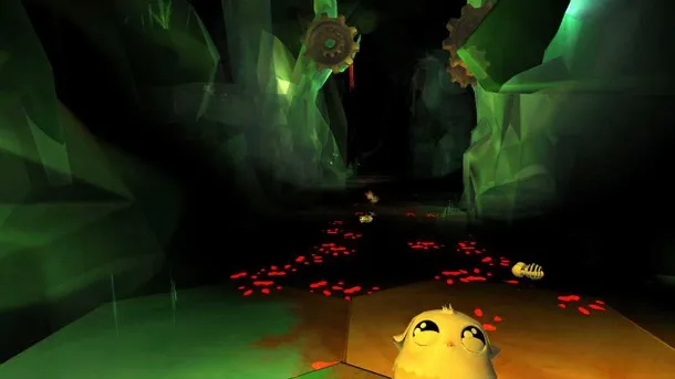You’re not completely lost in a dark abyss; adorable creatures called Mokos also help you light the world and find your way though it. You can toss these furry friends ahead of you to light a path to your next destination. But while Mokos are friendly, evil apparitions also roam the world, immediately turning the screen red to warn you they’re on the prowl. You’re forced to play the balancing act, because the very sound that gives you a beacon in the world also draws enemies straight to you.