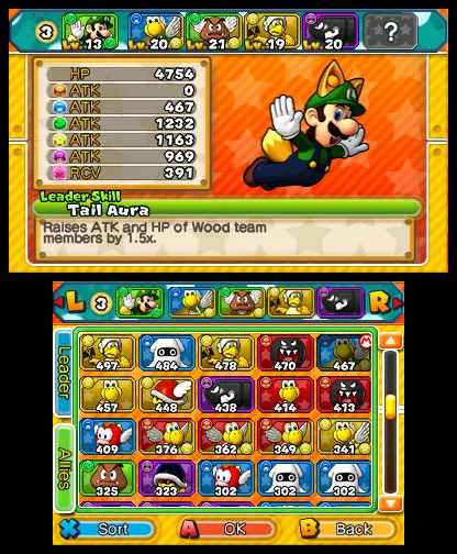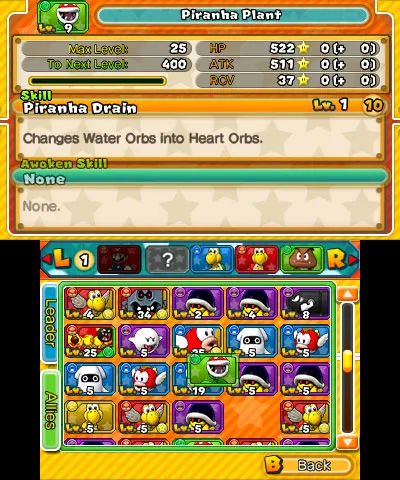 The overall mechanics in Puzzle & Dragons are simple: Match orbs by dragging them across the screen to attack enemy monsters. If you’re able to generate long combos, you deal more damage than simple matches. Both P&D Z and the Super Mario Bros. edition share a basic skeleton; orbs are the same colors, you capture creatures and upgrade them, and leaders with passive skills and allies with active abilities are present in each game. As GungHo demonstrates, however, that framework leaves plenty of room to create a pair of games with individual identities.