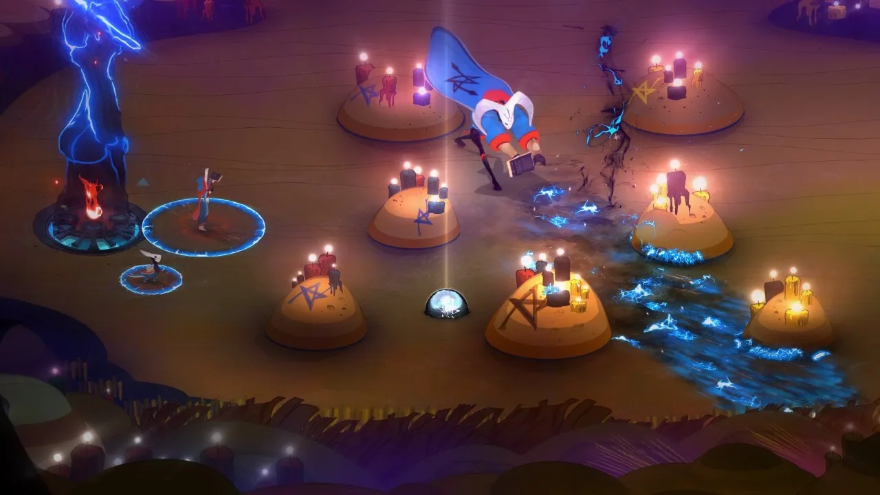 The Rites themselves are thrilling. Beginning with basic characters and progressing to more complex classes and abilities, the original sport is reminiscent of classic games like Ice Hockey or NBA Jam, but with plenty of twists. The learning curve is spot-on, and can be further tweaked through multiple A.I. difficulty settings. Teams of three characters must seize an orb at center-court, and slam or fling it into the opponent’s pyre. Defending players exude a protective aura that banishes opponents. Differing speeds, aura sizes, stamina pools, and other elements give each contestant various advantages. The real-time flow of a match had my heart beating fast, and the narrative ties between the competing characters kept me invested in the outcome.