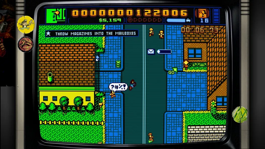 Within minutes of starting Retro City Rampage, you’re bombarded with gaming and pop culture references. Obvious nods to properties like The Dark Knight, Saved By The Bell, and Paperboy occupy entire missions, although others (Married...With Children, Hogan’s Alley, Cheers) are snuck in more subtly. This aspect of the game is initially entertaining, as it plays out like a virtual Where’s Waldo of references.