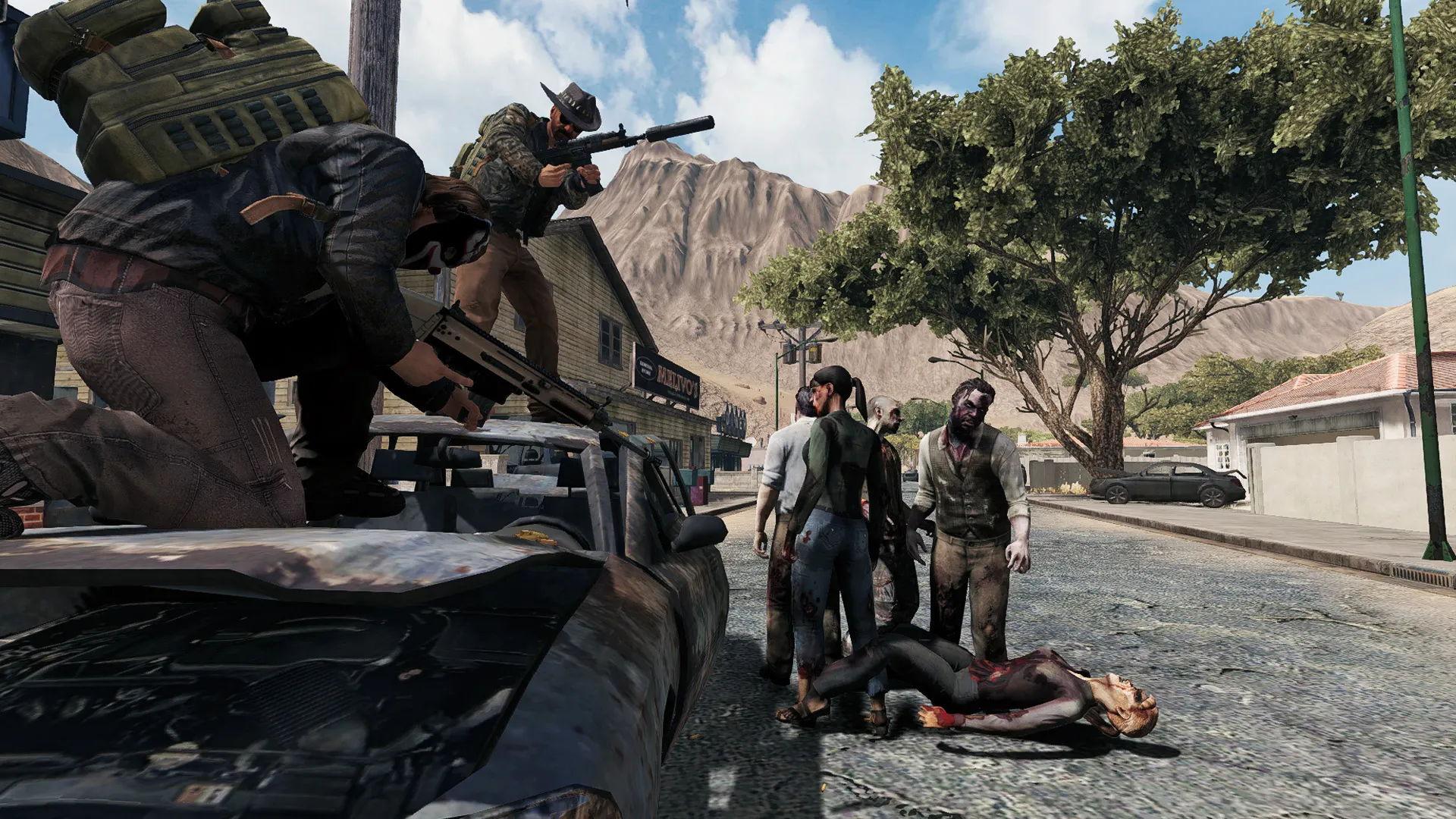 Romero's Aftermath also emphasizes a more cartoony style of play, as opposed to intensely demanding zombie games like DayZ; you won’t break a leg by jumping out of a second-story window, and players that join your group can’t stab you in the back.