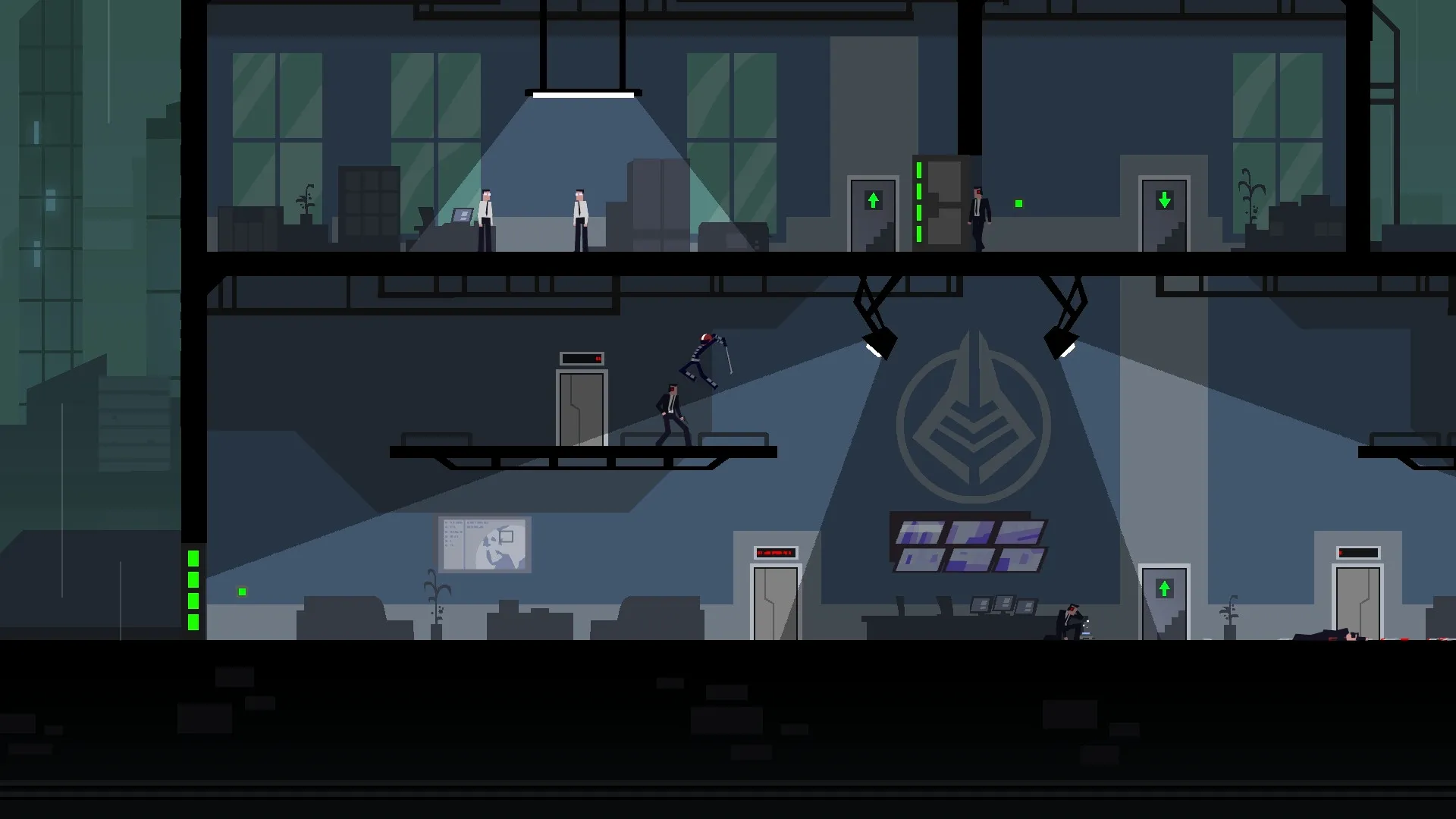 Despite the fluid action shown in the game's debut trailer below (reminiscent of Gunpoint), it's turn-based, and the game's heroine can scale walls, string up enemies, throw her katana, and execute foes in her pursuit of five executives bunkered in offices under high-tech security and surveillance.
