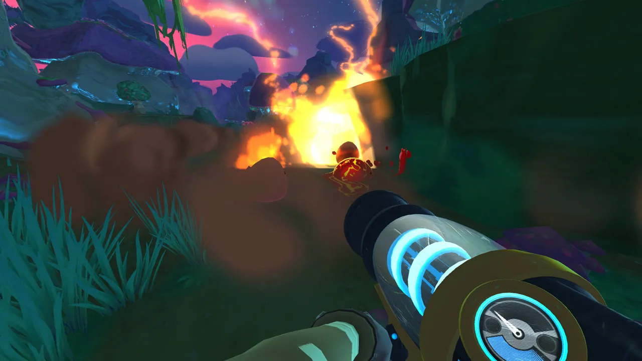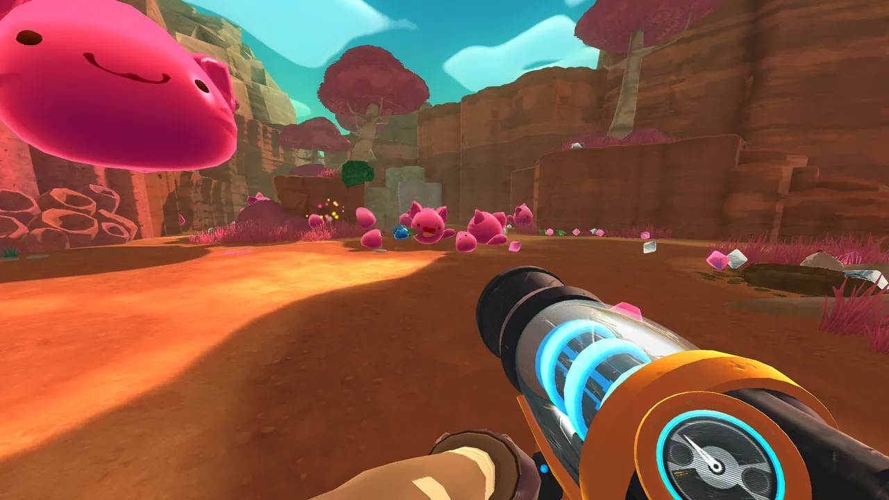 My time on the range periodically reminded me of many other gaming experiences I’ve enjoyed over the years. The low-stress farming element feels like Viva Piñata, the routine scratches the same itch as Stardew Valley, and exploring the unknown has a Minecraft vibe. Slime Rancher captures the essence of what makes those things fun, but it’s more than an assemblage of familiar parts. Everything comes to together in a carefully crafted whole with surprising depth that provides incentives to collect every slime and buy every upgrade (not to mention lots of resource-intensive, late-game rewards for the especially dedicated). Slime Rancher has the ability to keep you hooked for hours; I often looked out over my ranch, felt pride at my accomplishments, and eagerly ventured back into the wilderness to see what other strange things I could find.