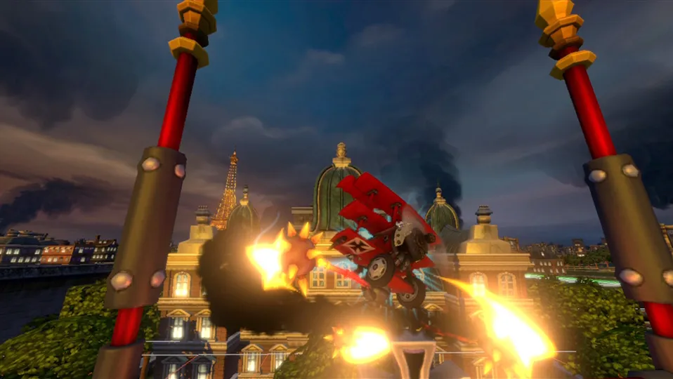 Snoopy Flying Ace offers single-, multiplayer, and co-op missions and challenges that put your plane handling and combat skills to the test. You’ll fly through rings in a timed sequence, protect precious monuments in exotic locales from Egyptian deserts to nighttime Parisian cityscapes, man giant turrets to fend off a fleet of enemies, or help Woodstock’s friends escape suspended mine traps that surround them. A friend can even join the fray at any time, which comes in handy during larger skirmishes such as the Zeppeligeddon missions that can, at times, be too much for a single beagle (though not impossible – come on, it’s Snoopy.) You’ll also have a chance to tinker with customization options, though you’re limited to simply choosing a plane type based on size, handling, and vitality, or practicing with different weapon types such as Leech homing missles or the explosive EMP that will help you blow your friends’ planes to smithereens. No worries about the horrors of war, though; avatars safely parachute out of the plane. Smart Bomb keeps the action family-friendly, so Lucy van Pelt won’t lose her face in an explosive deathmatch anytime soon.
