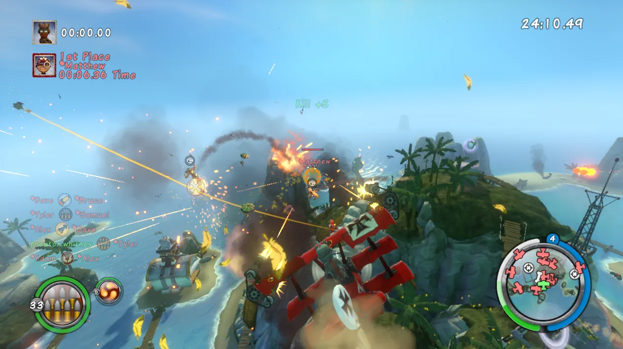 Each mode supports 16 players, and I had no problems quickly finding a full match. If you’re looking for something private with a few friends or simply want to check out multiplayer modes on your own, you have the option to fill in spaces with AI bots. Amid the frenzied and explosive aerial action, I experienced minimal lag, and the game remained smooth overall.