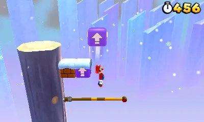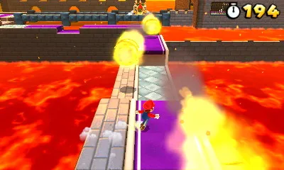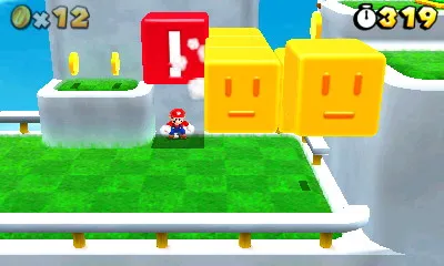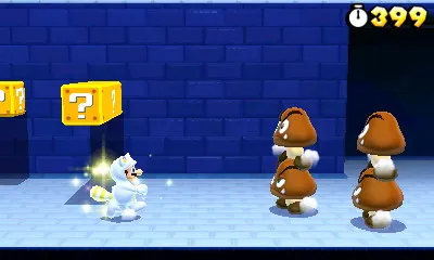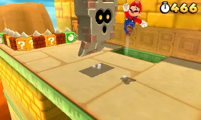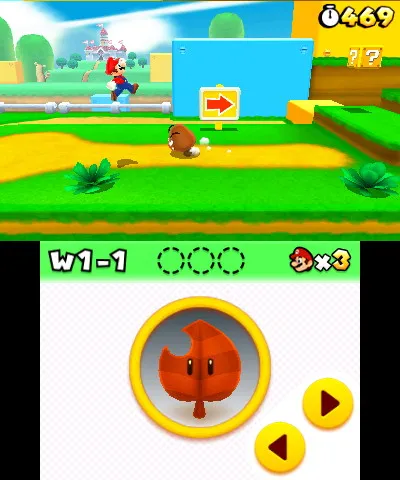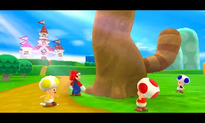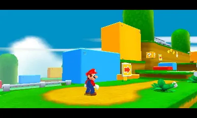 The controls are spot-on and easy to pick up right away. I initially questioned why 3D Land needs a run button in addition to the analog controls of the circle pad, but I was thankful during later tricky sections that require a deft touch. I eventually played 3D Land like a 2D Mario game, with my thumb covering both the run and jump buttons. The left shoulder button rounds out the arsenal making Mario crouch so that he can get into small tunnels and toggle long and high jumps.