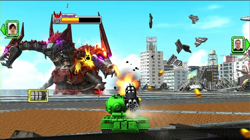 In each mode, you control one of a variety of tanks that trod across a city and spray giant bugs and cybernetic dragons with cannon fire. Your tanks turn so slowly that dodging enemy fire is nearly impossible. Aiming is largely automatic, which strips away the complexity from the action. You won’t always hit what you’re aiming at, but you won’t need to since the alien bugs usually just bounce around the screen waiting to be shot. Occasionally, you pick up new weapons like a minigun, giant laser, or rocket cluster, but these run on limited ammo, and do little to change the overall flow of the game, so they only seem necessary on the bigger boss-like creatures.
