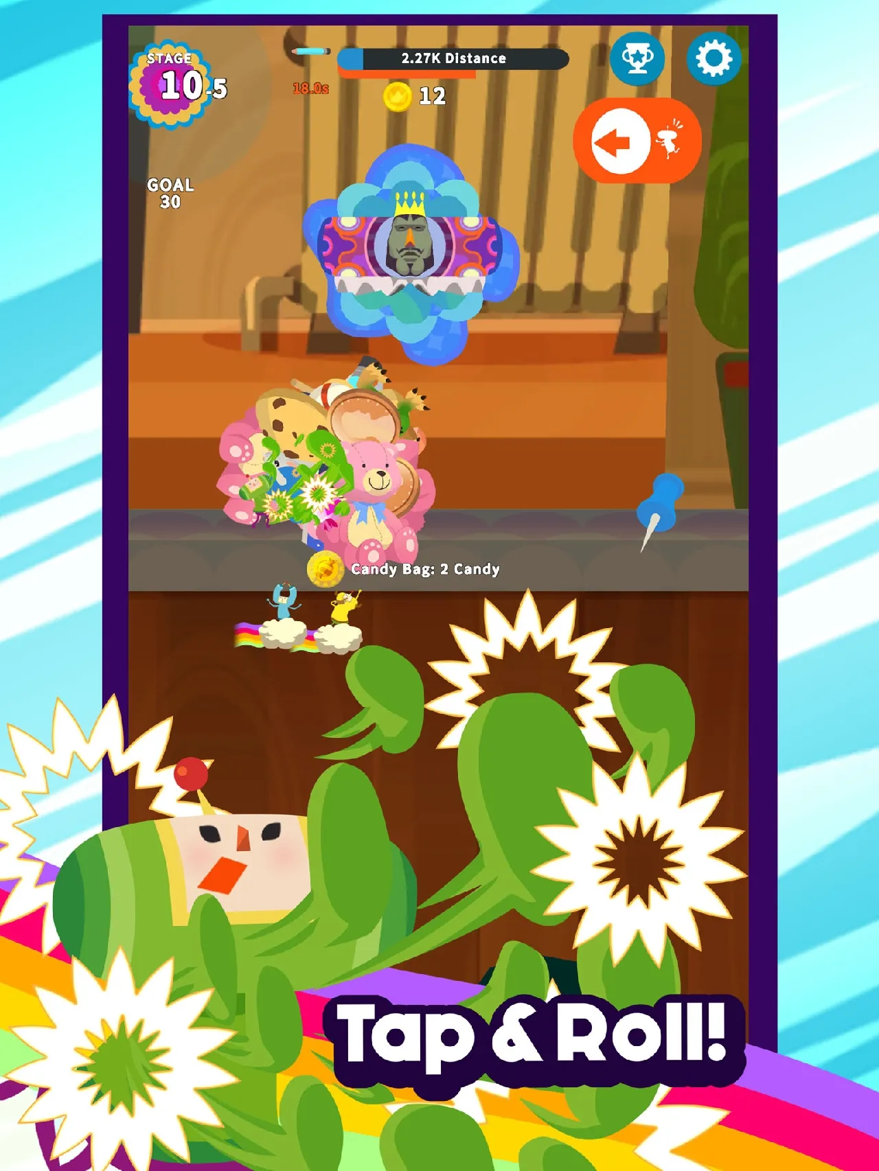 Like the original games, players are the Prince tasked by the King Of All Cosmos to restore the universe, but this time around that is done by tapping onto your phone's screen repeatedly. Across four different worlds, you attempt to get your magic sticky Katamari ball to legendary size.