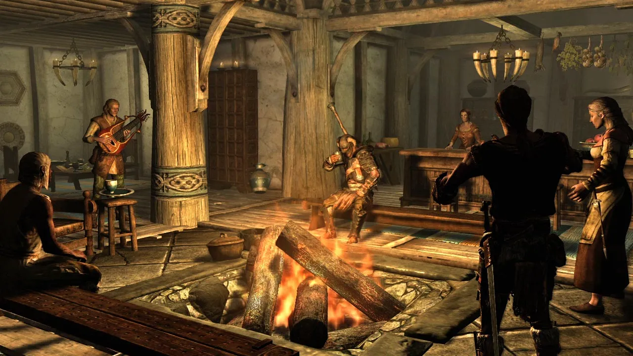 A story thread accompanies almost every quest. Some of these tales tie into the main conflict at hand (your character is the “Chosen One” tasked with cleansing the kingdom of dragons), while other side stories stand on their own or flesh out the world history. In a way, the game feels like a gigantic collection of short stories. The main campaign is superbly penned and is Bethesda's best effort to date. All of the scenes involving the greybeards are fantastic. I also thoroughly enjoyed Skyrim’s take on the Dark Brotherhood, and I got a big kick out of being a part of the Bard's Guild (my evil character had music in his heart all along). Even the books scattered across the kingdom, of which there are a dizzying amount, have great tales to tell.