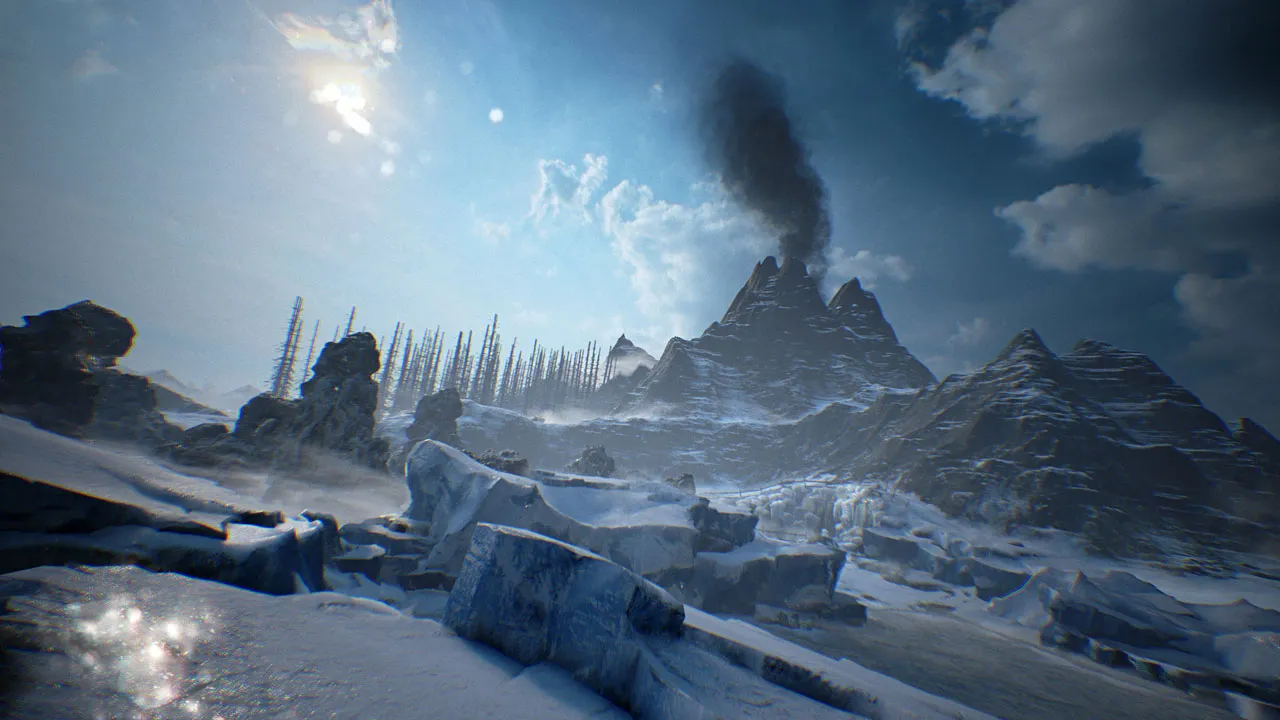 The structure is the biggest problem. The Fidelio Incident doesn’t leverage its interactivity well; it often feels like reading a book – but worse, since you can’t turn the page when you’re ready. Diary entries are laid out at regular intervals as you make your way up a mountain, but your progress feels linear and mechanical. In the early sections, you’re moving from one heat source to the next, finding the pages conspicuously laid out in front of you. You freeze to death if you’re exposed too long, so you can’t explore the environment. The only viable option is to proceed to the next plume of smoke, which saps any sense of discovery. Later, you must turn valves or solve simple puzzles to open the way forward, but these tasks always feel like busywork. The heart of the experience is the diary’s story, but I don’t like jumping through hoops of escalating frustration to access it.