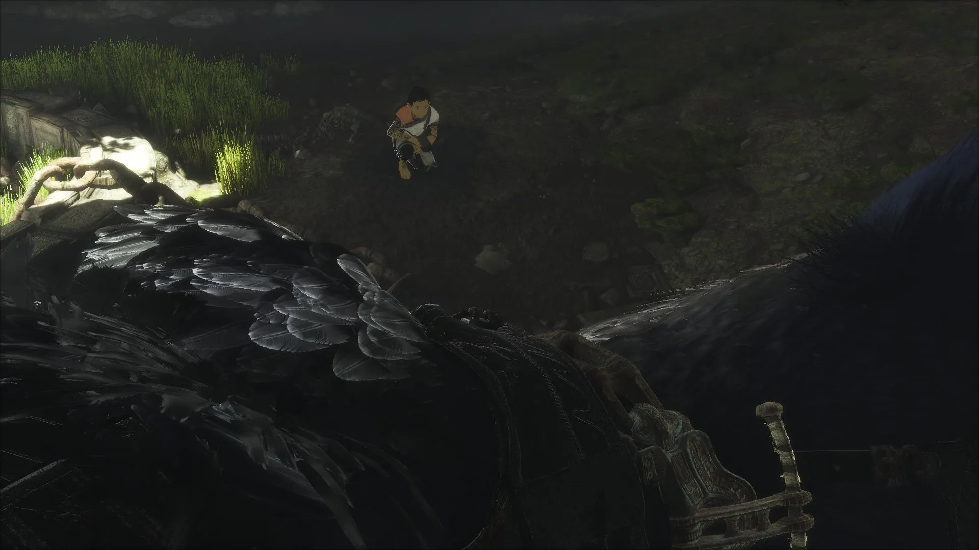 The boy's relationship with the Trico isn't an instant friendship. Once the animal is freed and fed it starts to warm up to the boy, and this opens up different interactions between the two such as the boy calling for the Trico, feeding it to spur it on, or climbing on it to reach new places. It will be interesting to see what other actions will occur between the two as the game progresses and how it influences the world.