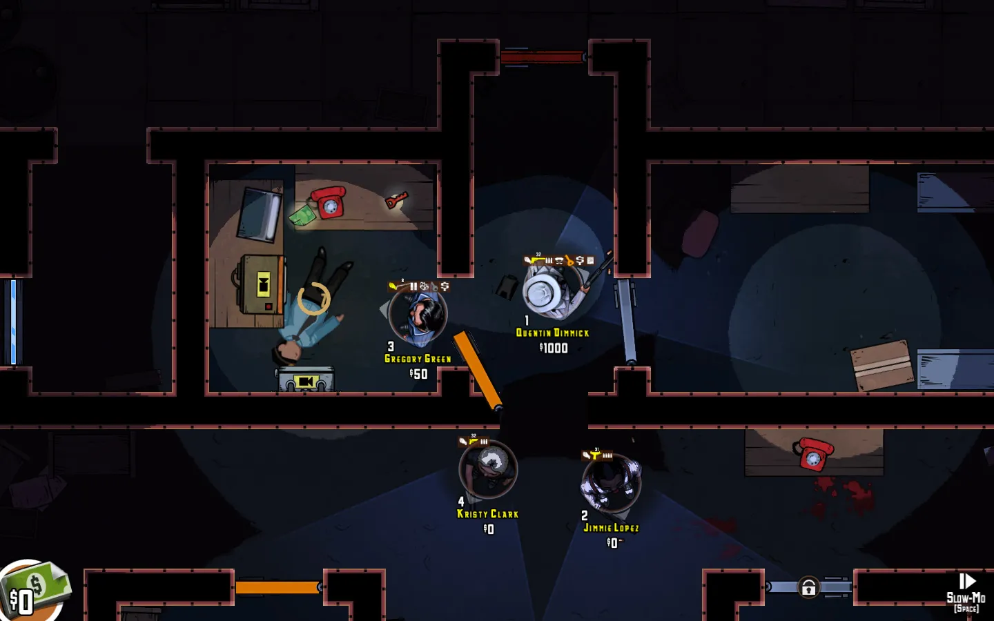 As you’ll see in the video below, you command a gang of criminals with diverse skills. You’ll need a wheelman, a safecracker, someone on the inside, and (if things go south) someone who is handy with firearms.