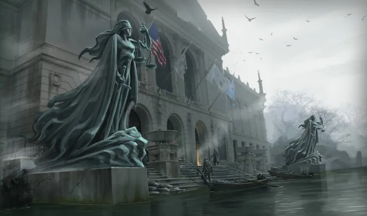 Set in the fictional Massachusetts town of Oakmont during the 1920s, The Sinking City follows the journey of a private investigator drawn to the city by its strange predicament. A half-year ago, the city suddenly flooded for no good reason, rendering the city nonfunctional, and ominous monoliths rose from the waters. But rather than evacuating, the Oakmont denizens seem perfectly content living in their newfound water world. Even stranger, others seem to be drawn to the city as well.
