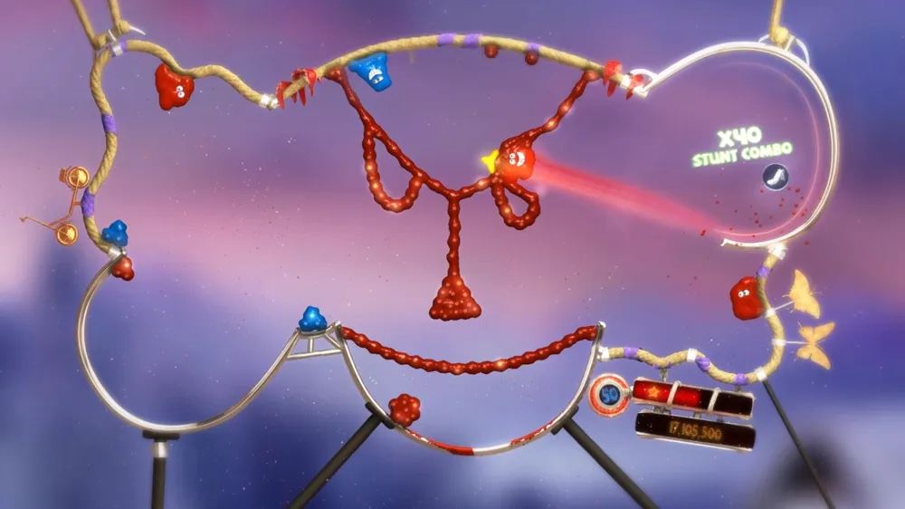 Much of the experimental nature comes from the option to reverse trajectory, which is unlimited. The only disadvantage to using it repeatedly is that your combo timer (which is unaffected) continues running down, causing your score to take a hit. You have a limited number of goo blobs to throw at the bombs, but you can keep them in the air building momentum for as long as you want.