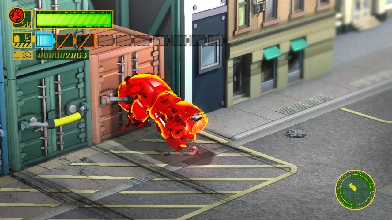 One interesting feature emerged when my character entered a factory. Once the view of the hero was obstructed by the building, the gamepad screen switched to a closer, third-person view until I opened the back door and made my way back into the neighborhood.