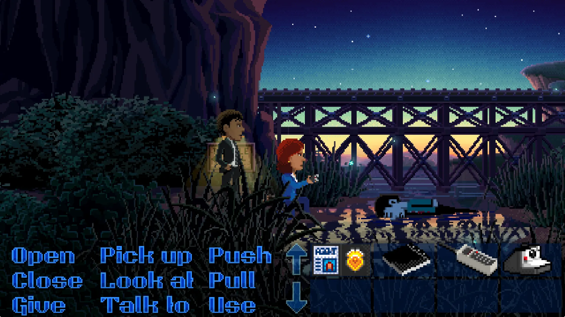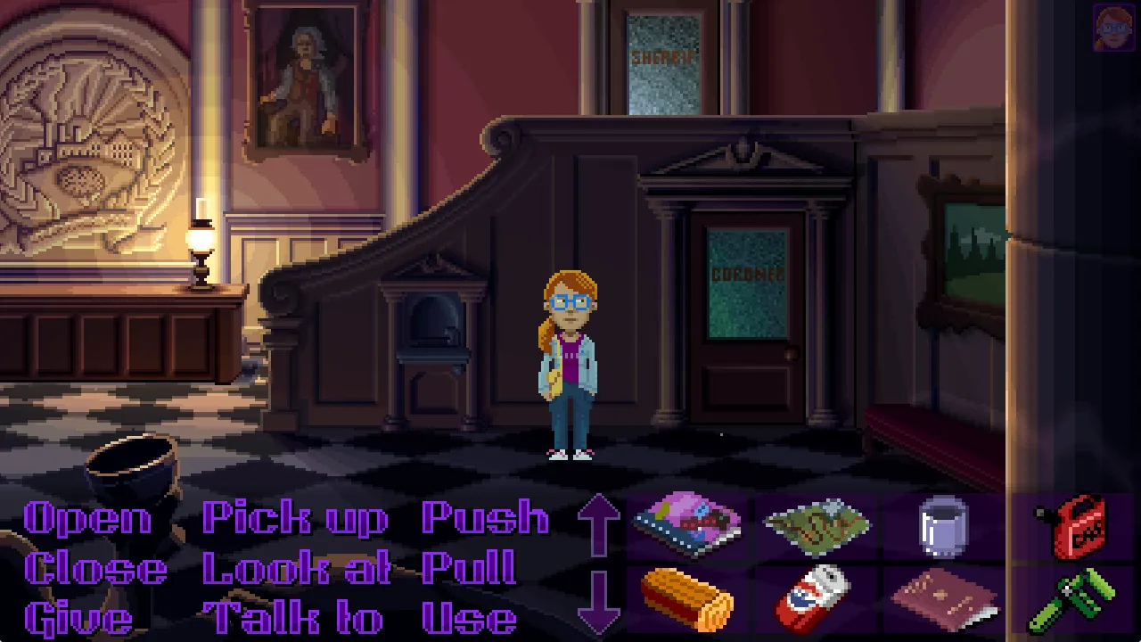 With two difficulty settings, hard and casual, Thimbleweed Park mends the flaws of older adventure games without sacrificing the charm. Hard mode features clever, multi-step puzzles that can be difficult to solve but are rarely obtuse. Listening to dialogue cues, such as a reporter mentioning that she is waiting for a call, can nudge you in the right direction. In casual mode, puzzles have streamlined solutions, removing specific steps such as no longer requiring a combination to open a safe. This makes the game feel shorter, but makes puzzles easier and more approachable.